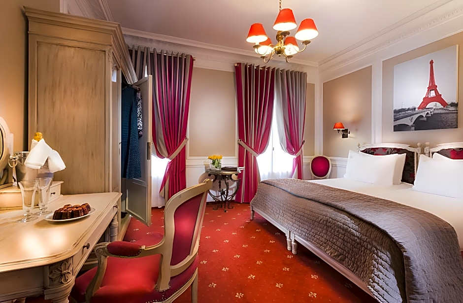 With a view of the Arc de Triomphe, this air-conditioned room features a flat-screen TV with cable channels, an electric kettle and a mini-bar. It also has a private bathroom with free toiletries, a hairdryer and a bath.